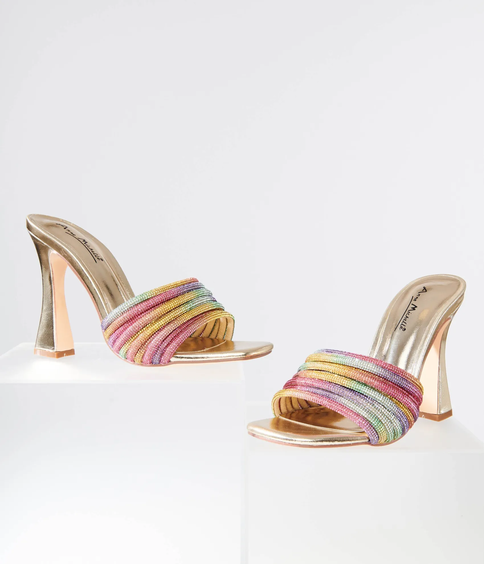 Be the first to review “Rainbow Rhinestone & Metallic Gold Heels” Cancel reply