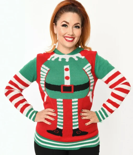 Be the first to review “Red & Green Elf Hooded Holiday Sweater” Cancel reply