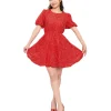 This impeccable dress showcases a breathtaking fit and flare silhouette, accentuating your figure flawlessly. Every turn will ignite a dazzling display as sequins adorn the entirety of this fiery red masterpiece. Adorned with a classic scoop neckline, this dress exudes timeless charm while its short puff sleeves add an irresistible touch of femininity that is perfectly complemented by elastic cuffs for added comfort. The elastic waist effortlessly cinches in to create an hourglass shape, while the balloon mini skirt adds volume and movement as you grace any occasion. With a back button keyhole detail adding distinction to the design, we have also thoughtfully included convenient side pockets for both style and functionality.