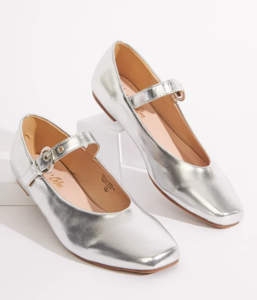 Be the first to review “Silver Leatherette Mary Jane Flats” Cancel reply