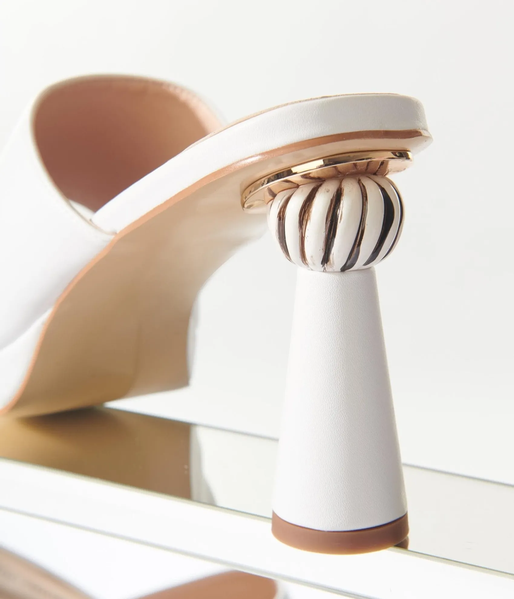 Unique Vintage White Leatherette Spiral Ball Mule Heels